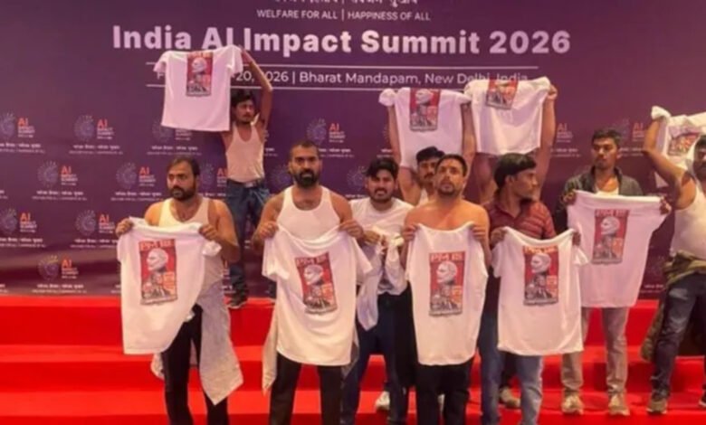 gmedianews24.com/नई दिल्ली। देश की राजधानी के ‘भारत मंडपम’ में आयोजित वैश्विक ‘इंडिया एआई इम्पैक्ट समिट 2026’ के दौरान शुक्रवार को उस समय अफरा-तफरी मच गई, जब भारतीय युवा कांग्रेस (IYC) के कार्यकर्ताओं ने सुरक्षा घेरा तोड़कर प्रदर्शन शुरू कर दिया। प्रदर्शकारियों ने ‘शर्टलेस’ (Shirtless) होकर प्रधानमंत्री नरेंद्र मोदी के खिलाफ नारेबाजी की। दिल्ली पुलिस ने इस मामले में त्वरित कार्रवाई करते हुए 10 से अधिक लोगों को हिरासत में लिया है और कानूनी कार्रवाई शुरू कर दी है।