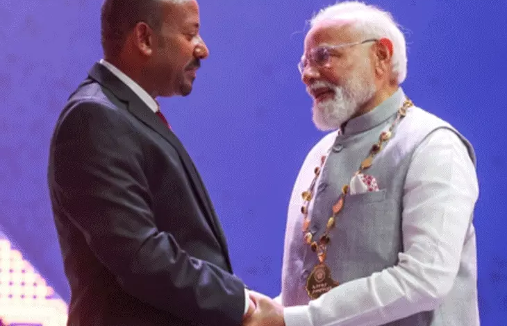 gmedianews24.com/अदीस अबाबा। प्रधानमंत्री नरेंद्र मोदी को मंगलवार को इथियोपिया सरकार ने अपने सर्वोच्च राष्ट्रीय सम्मान ‘द ग्रेट ऑनर निशां ऑफ इथियोपिया’ से सम्मानित किया। इस सम्मान को प्राप्त करने वाले प्रधानमंत्री मोदी पहले वैश्विक नेता बन गए हैं। सम्मान मिलने पर प्रधानमंत्री ने कहा कि यह उनके लिए अत्यंत गौरव और सम्मान की बात है। प्रधानमंत्री के इथियोपिया दौरे का आज दूसरा दिन है।