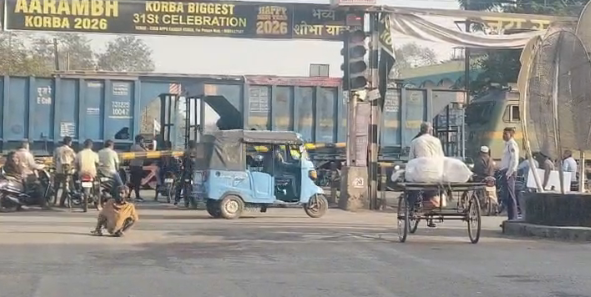 gmedianews24.com/कोरबा। ट्रांसफर नगर रेलवे क्रॉसिंग पर शुक्रवार को मालगाड़ी को 45 मिनट से अधिक समय तक खड़ा कर दिए जाने से आम लोगों को भारी परेशानी का सामना करना पड़ा। फाटक बंद रहने के कारण सड़क के दोनों ओर वाहनों की लंबी कतार लग गई और यातायात पूरी तरह प्रभावित हो गया।