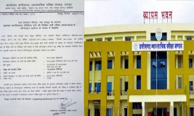छत्तीसगढ़ व्यापम: जल संसाधन विभाग में सहायक मानचित्रकार पदों पर भर्ती, आवेदन प्रक्रिया शुरू