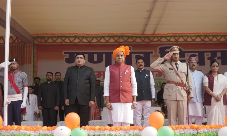 gmedianews24.com/77वें गणतंत्र दिवस के अवसर पर सीएसईबी फुटबॉल ग्राउंड में आयोजित गणतंत्र दिवस मुख्य समारोह में राजस्व मंत्री श्री टंक राम वर्मा ने ध्वजारोहण कर परेड की सलामी ली। मुख्यमंत्री के जनता के नाम संदेश का वाचन किया।