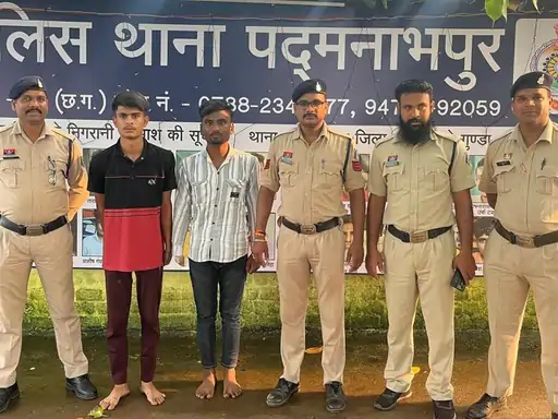 पद्मनाभपुर पुलिस को सूचना मिली थी कि जेल तिराहा स्थित देवांगन होटल के पास दो युवक चोरी की योजना बना रहे हैं। पुलिस ने तुरंत दबिश देकर कादंबरी नगर निवासी आदर्श द्विवेदी (19) और पवन साहू (18) को पकड़ लिया।