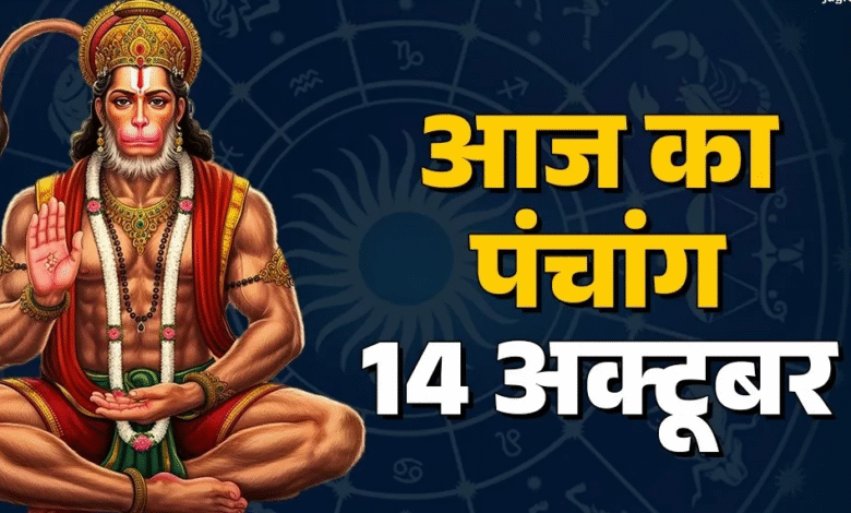 gmedianews24.com/एस्ट्रोपत्री। आज यानी 14 अक्टूबर को कार्तिक माह के कृष्ण पक्ष की अष्टमी तिथि और दिन मंगलवार है। सनातन धर्म में मंगलवार का दिन हनुमान जी की पूजा करने के लिए शुभ माना जाता है। धार्मिक मान्यता के अनुसार, इस दिन बजरंगबली की पूजा करने से सभी संकट दूर होते हैं। साथ ही सुख-समृद्धि में वृद्धि होती है। इस दिन कई योग भी बन रहे हैं। ऐसे में आइए जानते हैं आज का पंचांग (Aaj ka Panchang 14 October 2025) के बारे में।