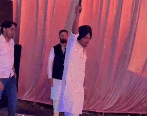 gmedianews24.com/पंजाब के लुधियाना से आम आदमी पार्टी (AAP) MLA के छोटे बेटे ने एक शादी समारोह में हवाई फायरिंग कर दी। विधायक के बेटे ने खुलेआम हवा में 2 फायर किए। इस दौरान उसके बड़े भाई ने गोली चलाने से रोकने का प्रयास भी किया। अब मामले से जुड़ा अब वीडियो भी सामने आया है, जिसमें बैकग्राउंड में पंजाबी सॉन्ग चल रहा है।